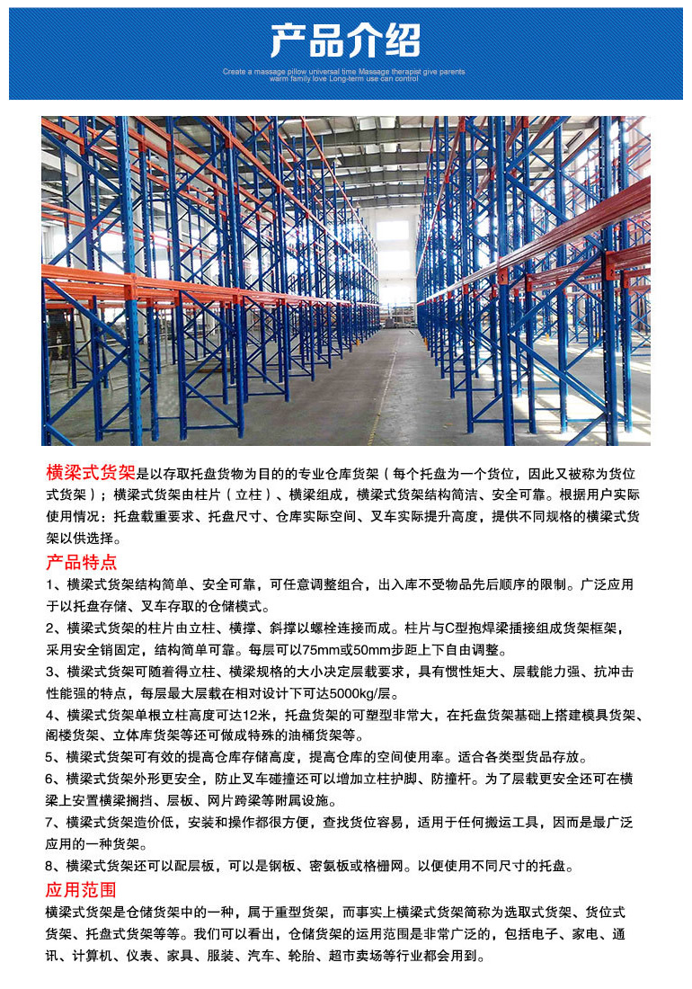 特重型塑料托盘储存超市储存超市储存方式货架,又简称承重梁式塑料托盘储存超市储存超市储存方式货架,或称货位式塑料托盘储存超市储存超市储存方式货架,是属于塑料托盘塑料托盘储存超市储存超市储存方式货架类,在新国际的各种各样储存塑料托盘储存超市储存超市储存方式货架体系中中最最珍贵本身塑料托盘储存超市储存超市储存方式货架形势。以立柱片+承重梁形势的全組裝格局,格局扼要好使。可遵循文件储存方式企事业组织集装极品转备的基本特征加装有如:隔档、钢层板(木层板)、金属材料丝网层、储存笼导轨、油桶架等功能主治性邮件附件。知足区別企事业组织集装极品转备形势的玩意文件储存方式。